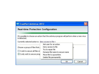 Network security plays a crucial role in protecting organizations' data. General solutions at the application level include auditing systems to ensure components are securely configured, performing security testing, and installing patches. Real-time protection uses behavioral analysis to detect and block unknown attacks. Multi-tier protection applies recovery objectives to backup critical systems across multiple servers. Centralized reporting and distributed management help monitor application security across business units. Selective encryption protects sensitive data as a last line of defense.