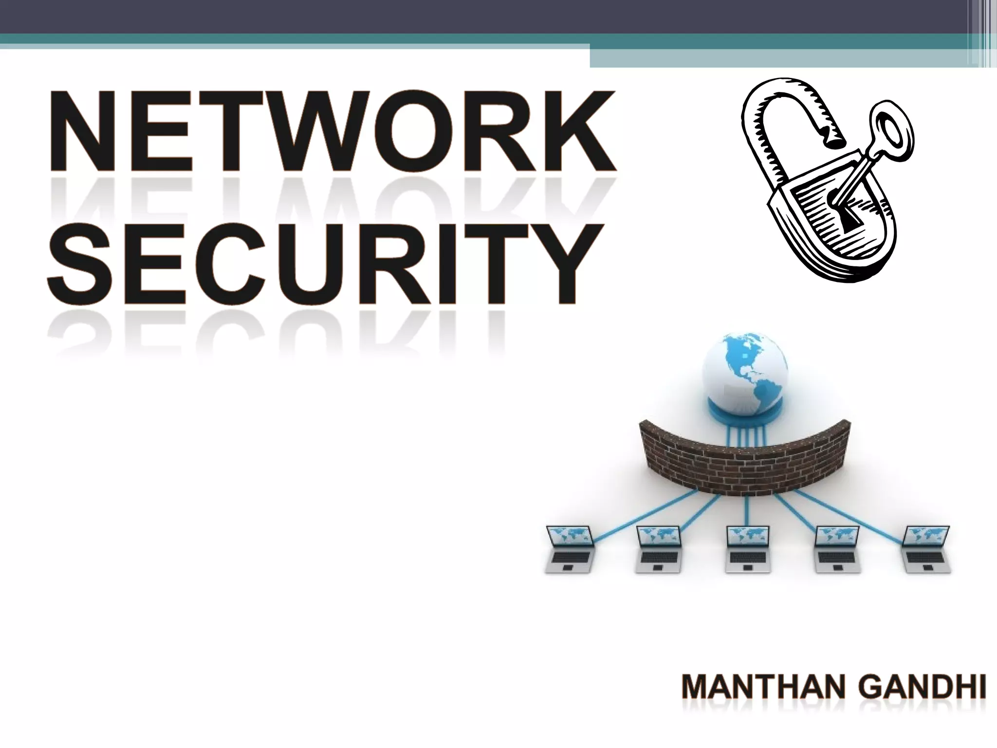 The document discusses various aspects of network security including definitions, threats, prevention techniques, and tools. It describes common network security threats like viruses, trojan horses, and attacks. It also explains prevention techniques such as cryptography, firewalls, digital signatures, and biometrics. Biometrics authentication methods like fingerprints, iris scans, face and voice recognition are outlined. The roles of network security devices, virtual private networks, and the Network Security Toolkit are also summarized.