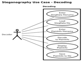 Network security involves protecting computer networks through tools like firewalls, encryption, and digital signatures. Common security threats include TCP hijacking, packet sniffing, and unauthorized access to networks. Cryptography and steganography are methods used to secure communications and information. Cryptography involves encrypting data using techniques like public key infrastructure, while steganography hides secret messages within ordinary files like images or audio files. Both have benefits but also limitations, as strong encryption does not guarantee security if other vulnerabilities exist.