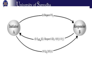 Authentication protocols allow communicating parties to verify each other's identities and establish secret session keys. They address confidentiality and timeliness issues like replay attacks. Approaches include timestamps and challenge-response protocols. Public key authentication enables parties knowing each other's public keys to mutually authenticate. Diffie-Hellman key exchange establishes a secret key based on each party's public key. Key distribution centers and protocols like Kerberos allow authentication through a trusted third party without pre-shared keys. Digital signatures authenticate message content and author, preventing later repudiation, while being verifiable by third parties. Direct signatures involve encrypting a message hash with a private key, while arbitrated signatures involve a trusted arbiter.