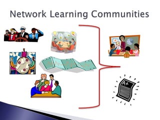 The document discusses the importance of mobilizing professional knowledge and the role of collaborative inquiry in improving educational practices and student achievement. It outlines strategies for creating network learning communities, emphasizing leadership, trust, and deep collaboration to foster a supportive school culture. Challenges include difficulty in cultivating necessary social processes and the need for focused efforts and leadership support for sustained success.