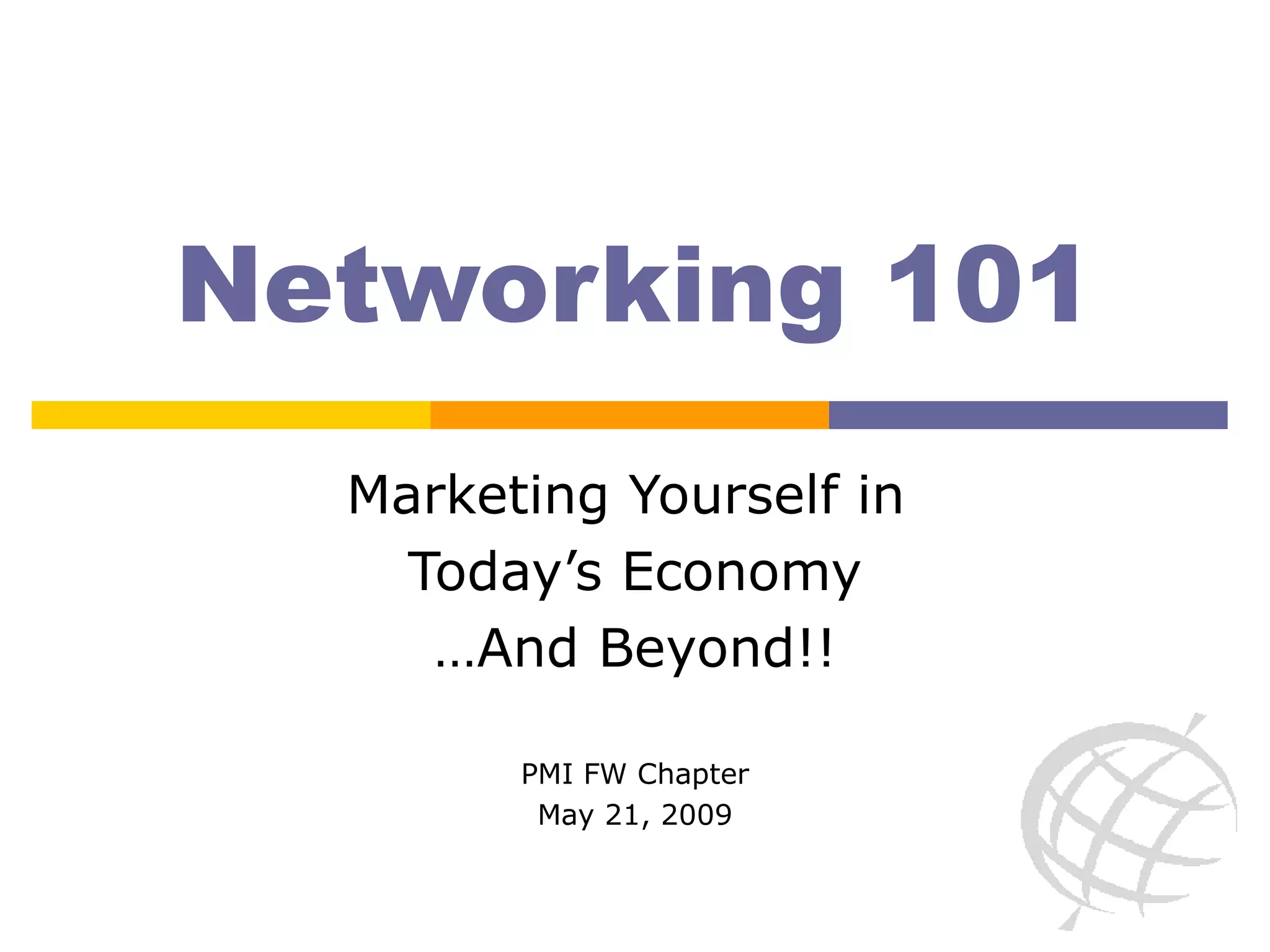 The document discusses new approaches to networking that have emerged with social media and online professional networks. It encourages readers to develop a clear agenda for their social media presence, utilize their existing networks, find ways to add value for others within their network, and create new opportunities through blogging, volunteering, or sharing expertise in order to strengthen their professional networks. The key message is that networking requires ongoing effort but can be enjoyable and help people advance in their careers.