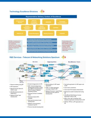 HCL's telecom practice focuses on micro-virtualization and transformation strategies for telecom technology solutions, with over 15 years of engagement with tier 1 CSPs in Europe. The organization invests in future growth areas like VoIP/IMS and unified communications, emphasizing R&D services and partnerships to optimize technology offerings. HCL aims to deliver innovative products and solutions across various sectors, including aerospace, telecommunications, and consumer electronics.