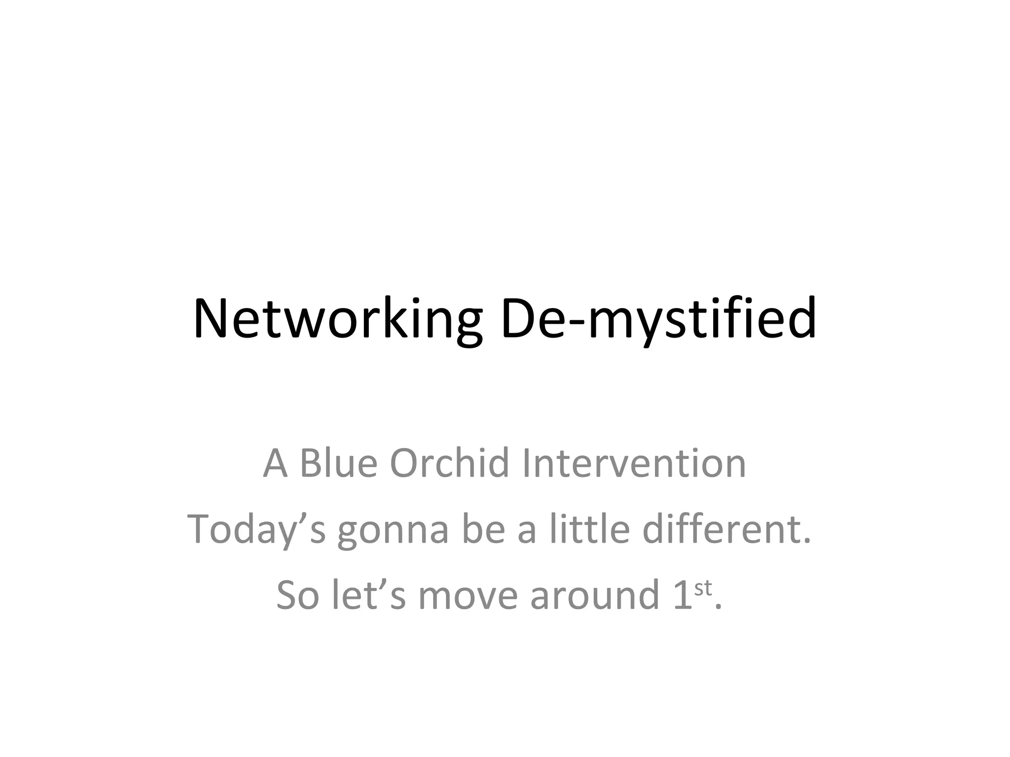 The document provides tips and strategies for effective networking. It aims to illustrate that networking is natural, beneficial, and can be easy. It discusses how to prepare for networking events, start conversations, build rapport, work a room, and network in different settings. The overall goal is to increase one's circle of influence and open doors to new opportunities through relationship-building.