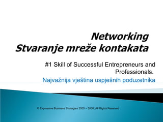 Uspješni poduzetnici moraju izgraditi mrežu kontakata kako bi preživjeli u konkurentnom okruženju, a svaki novi kontakt može otvoriti vrata za brojne nove klijente. Umrežavanje je proces stvaranja obostrano korisnih odnosa i ključni element uspjeha u poslovanju, a socijalne mreže poput Facebooka i Twittera nude besplatne načine za promociju i komunikaciju. Stvaranje kontakata je dvosmjerna ulica koja zahtijeva otvorenost, spremnost na pomoć i aktivno traženje preporuka.
