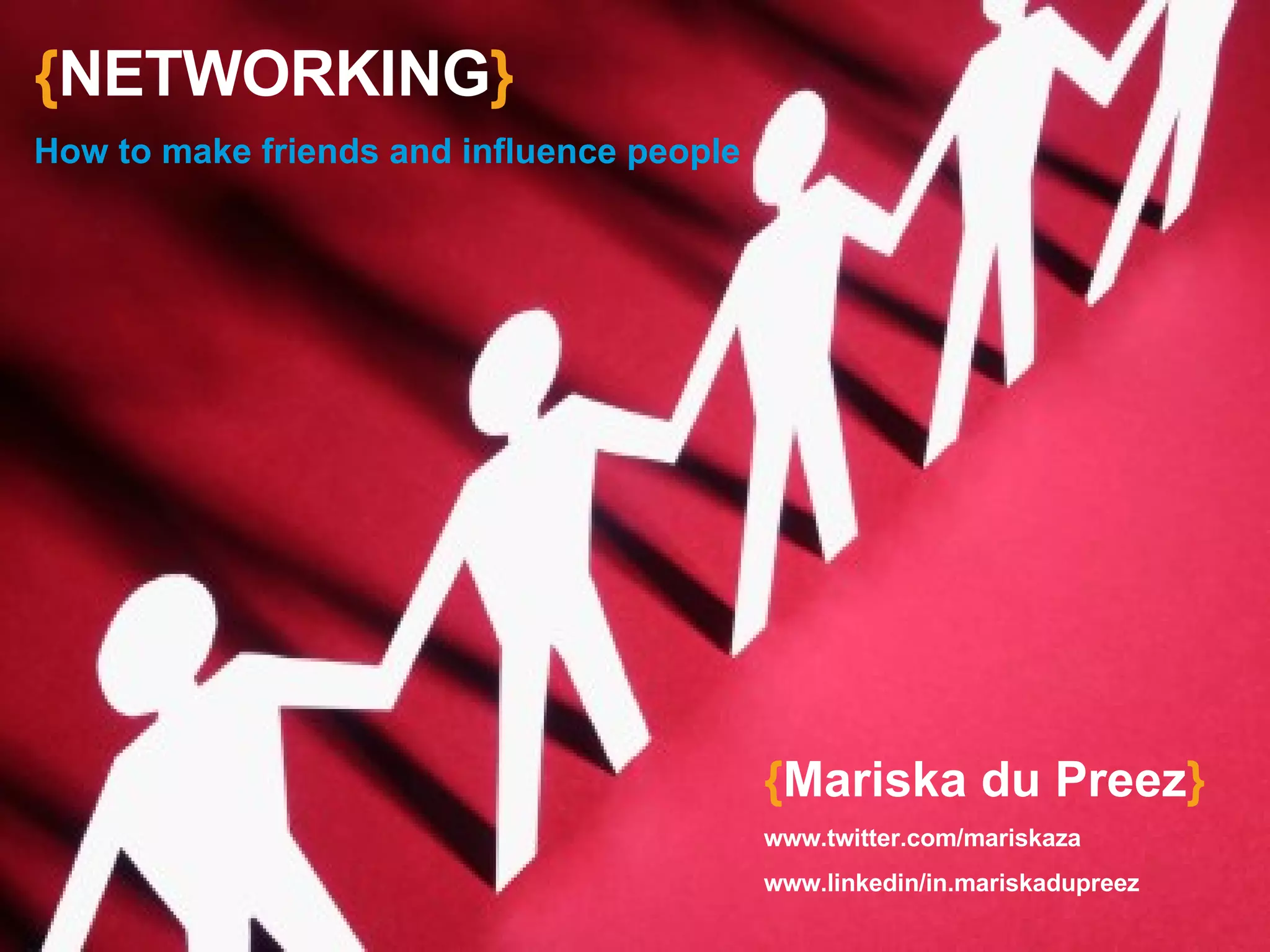 The document provides guidance on networking, emphasizing the importance of building connections and making a positive impression. It includes expert tips on introducing oneself, engaging in conversations, and following up after initial meetings. The content stresses the value of listening, being sincere, and preparing to make the most of networking opportunities.