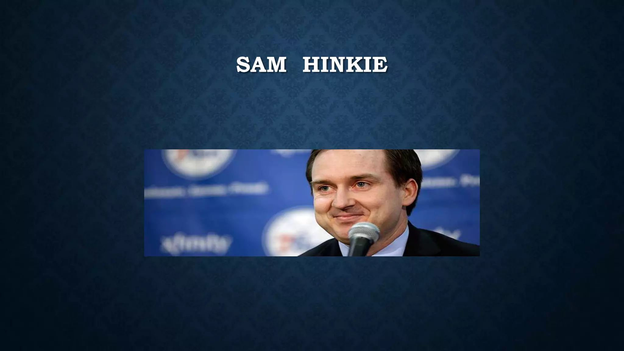 Sam Hinkie grew up moving around as a child and faced personal tragedies. He had a successful career in management consulting and sports analytics before becoming GM of the 76ers. As GM, he incorporates analytics into decision-making and focuses on long-term rebuilding through strategic planning and staff development.