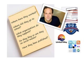 The document provides tips on how to network purposefully by identifying potential contacts, building relationships through in-person meetings and online connections, and maintaining networks over time by offering help, sharing information, and expressing appreciation for others. It advises approaching networking as an ongoing process that involves learning about others' interests and expertise while also sharing one's own, in order to build trust and familiarity that can lead to potential job opportunities.