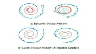 The document provides an overview of Neural ODEs, highlighting their significance in deep learning and referencing key research from NeurIPS 2018. It explains the basics of ordinary differential equations (ODE), their applications, and how they can be used to solve neural network problems, including methods like the adjoint method for backpropagation. Additionally, it discusses continuous normalizing flows and the potential of Neural ODEs in modeling data that is irregularly sampled.