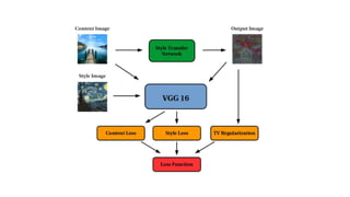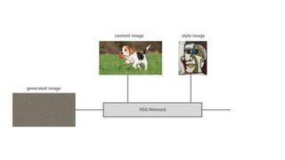 Neural style transfer allows computers to take an image and apply the visual style of another image to generate a new image. This is done by defining content and style cost functions that measure how well the generated image matches the content of the input image and the style of the style image. The algorithm then uses gradient descent to minimize the total cost and iteratively update the generated image until the content and style are closely matched.