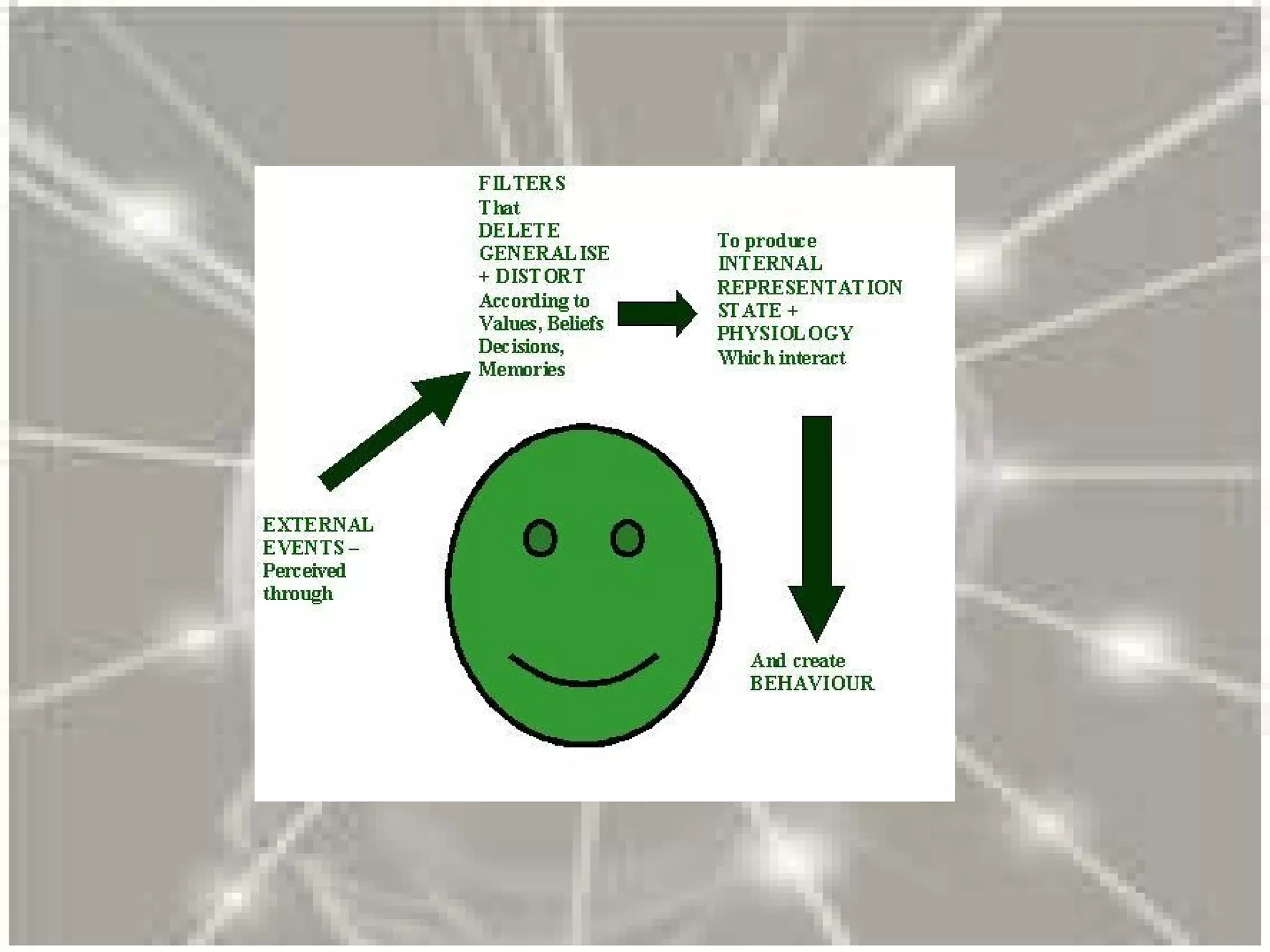 Neuro Linguistic programming (NLP) is a system of alternative therapy based on the idea that people's thoughts, language, and behaviors are connected. NLP seeks to help people become more self-aware and effective communicators by changing patterns learned through experience. NLP focuses on a person's internal "maps" of the world and how neurological and linguistic filters shape their perceptions and behaviors. The core presuppositions of NLP are that people's maps determine their actions, not objective reality, and that impoverished maps can limit choices and cause problems. NLP therapy aims to identify and replace unhelpful thought patterns with more useful ones to increase behavioral flexibility.