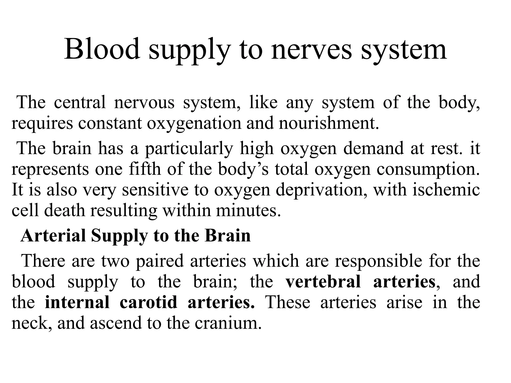 The document discusses neurological disorders and provides details about cerebrovascular accidents (strokes). It describes the blood supply to the brain from arteries like the internal carotid and vertebral arteries. There are two main types of strokes - ischemic caused by blockage and hemorrhagic caused by bleeding. Symptoms can include weakness, difficulty speaking, and vision issues. Diagnosis involves scans and tests of the blood. Treatment depends on the type but may include clot-busting drugs or surgery. Lifestyle changes can help prevent strokes by maintaining healthy blood pressure and cholesterol levels.