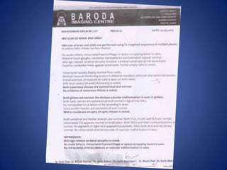 1) The document presents 25 cases of patients with various neurological visual field defects seen at the Baroda Ophthalmic Society between 2003-2013. The cases describe the patient's history, examination findings, visual fields, imaging results and progression over time.