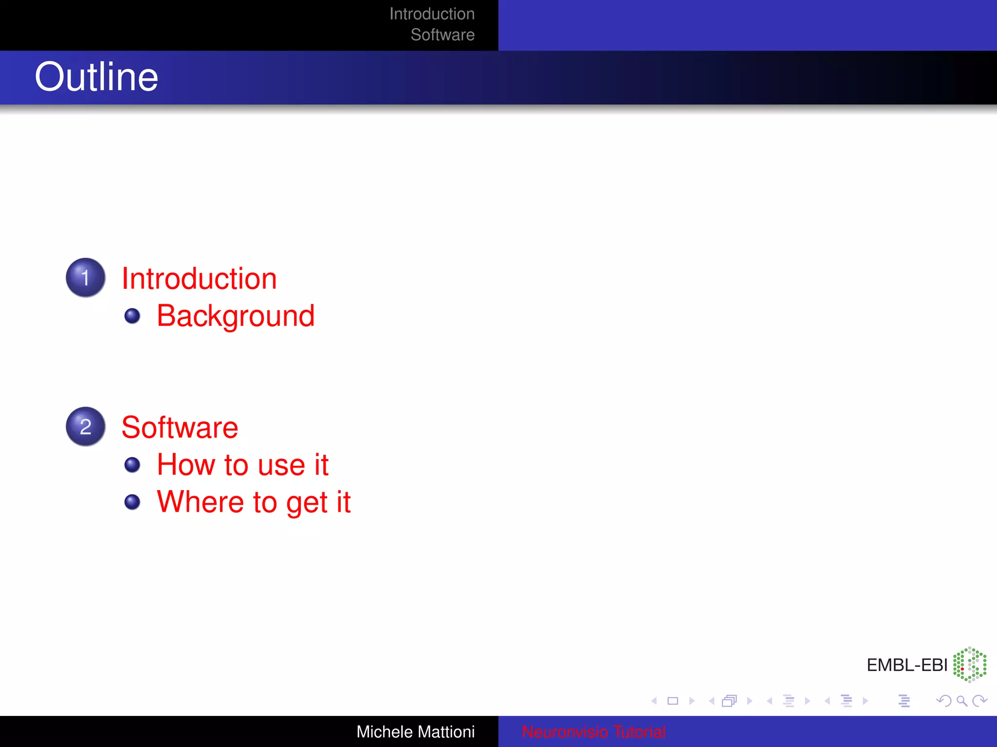 This document is a tutorial for the Neuronvisio software. It provides an overview of the software, including how to visualize and interact with neuron models, plot simulation results, and integrate the software into other code. The tutorial describes how to save simulation results for later analysis and explores the software's website, documentation, and open source code availability. It concludes by offering a live demo of the Neuronvisio software.