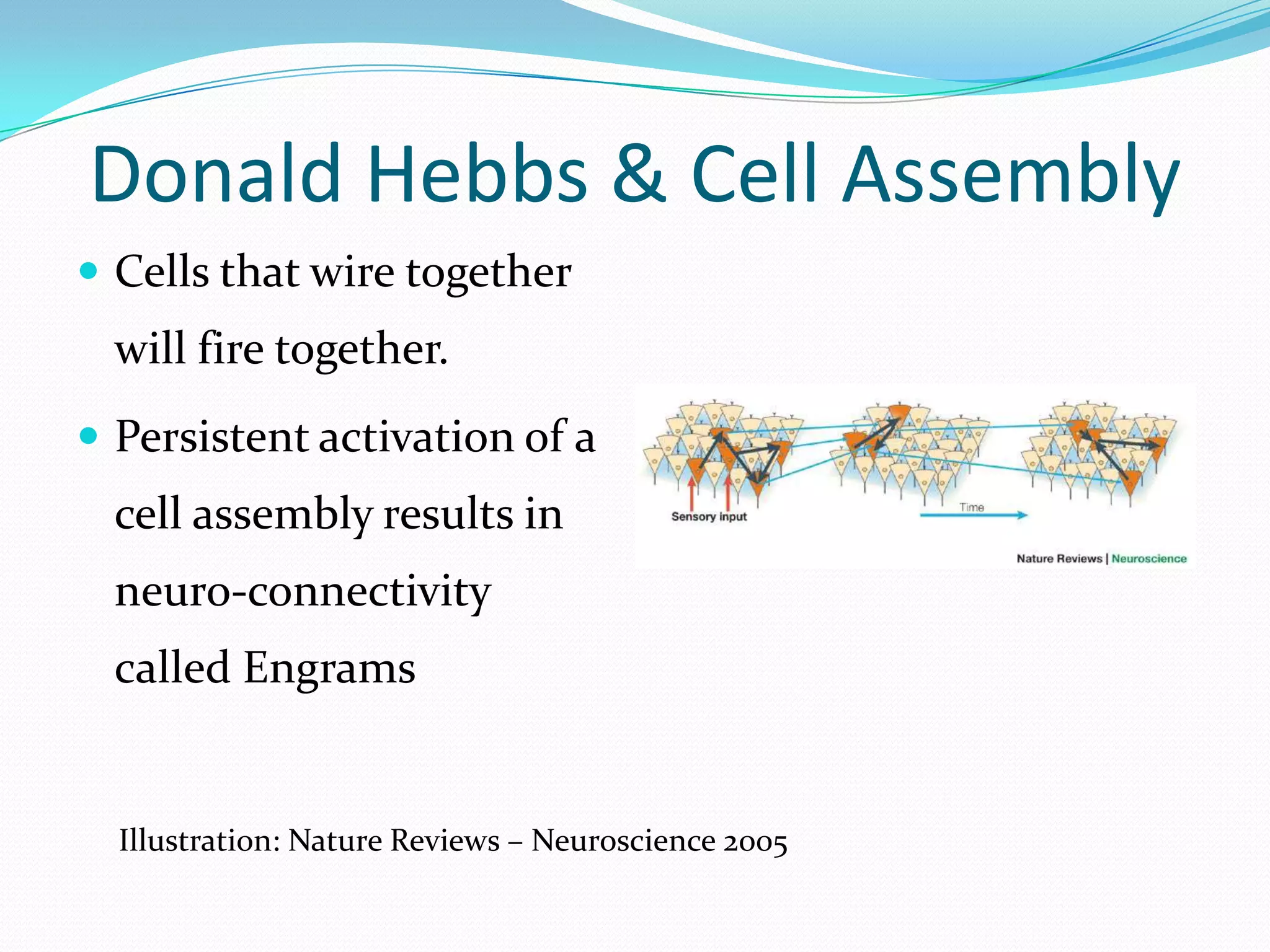 1. Cells that are activated together frequently form connections called engrams, resulting in neuroplasticity. Persistent activation of cell assemblies leads to changes in brain connectivity.