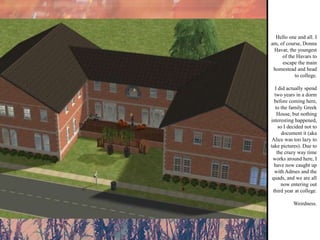 Donna Havar helps her brother Bennie realize his fiancée Tamara is intolerant and cruel towards his family. Donna introduces Bennie to her friend Marsha to show him there are better women, and they immediately connect. Bennie and Marsha spend the night together in the hot tub, kissing. Donna's plan was a success in separating Bennie from Tamara and finding him a kind new partner in Marsha.