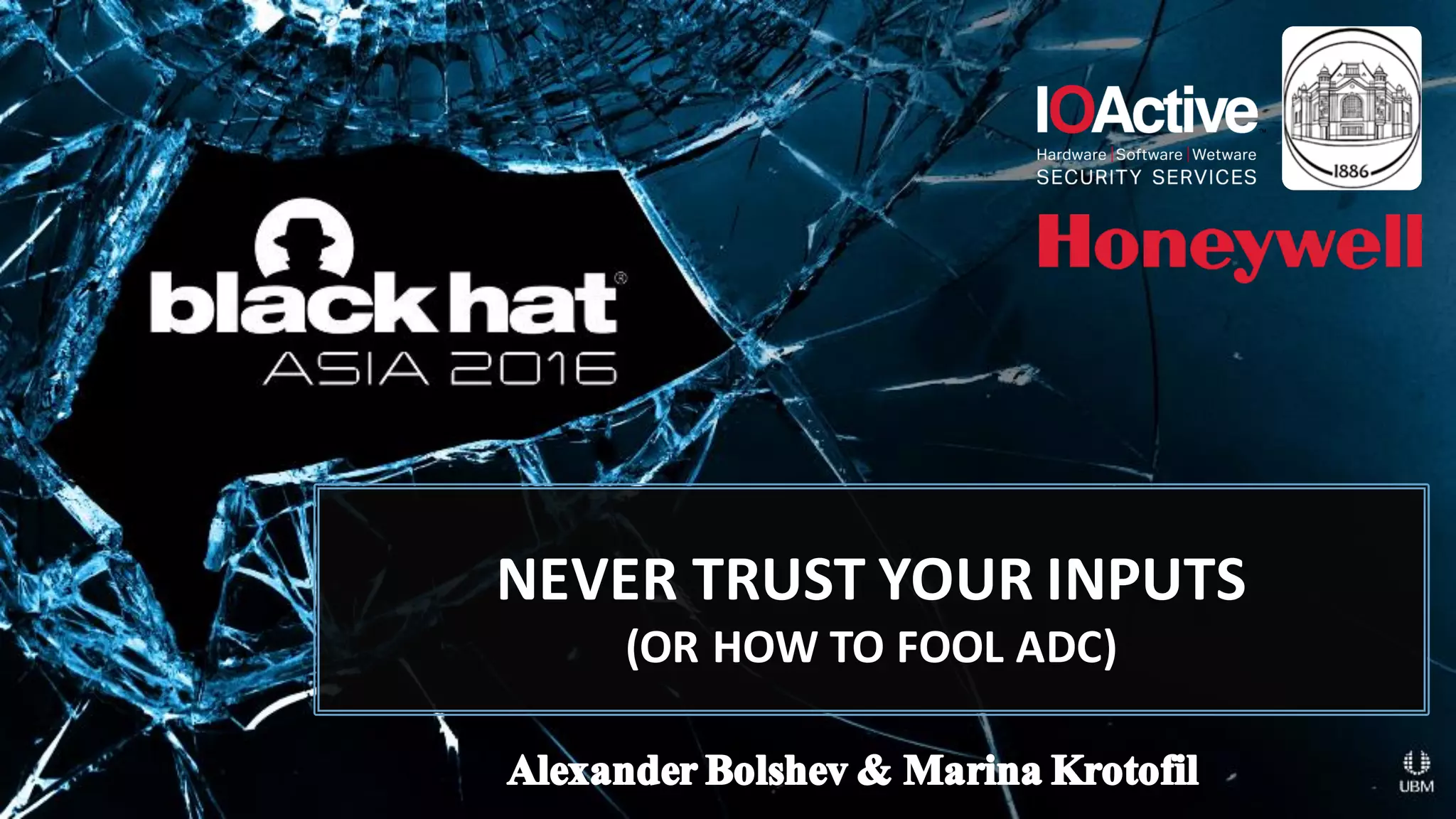 The document discusses attacking industrial control systems by exploiting vulnerabilities in analog-to-digital converters (ADCs). It describes how generating signals at specific frequencies and amplitudes can cause ADCs to output incorrect digital values, potentially compromising sensor monitoring systems. Several proof-of-concept attacks are demonstrated, including generating signals that race the ADC clock, exceed the valid amplitude range, or produce different readings from multiple ADCs measuring the same signal. The document warns that many industrial systems have vulnerabilities in their analog interfacing that could allow remote manipulation if exploited.