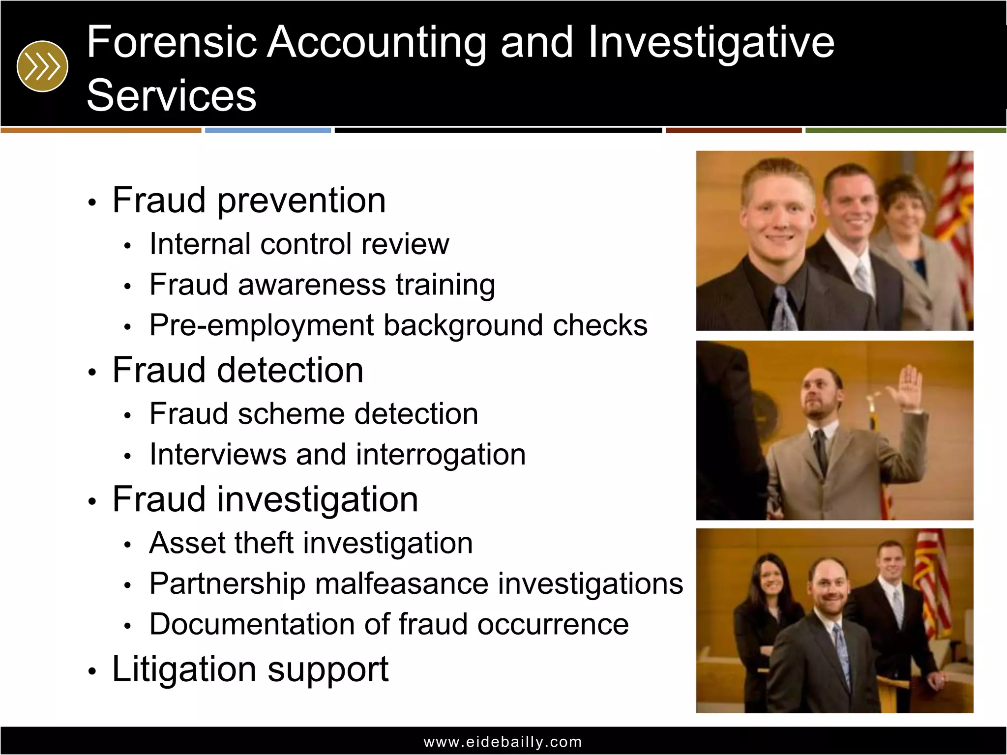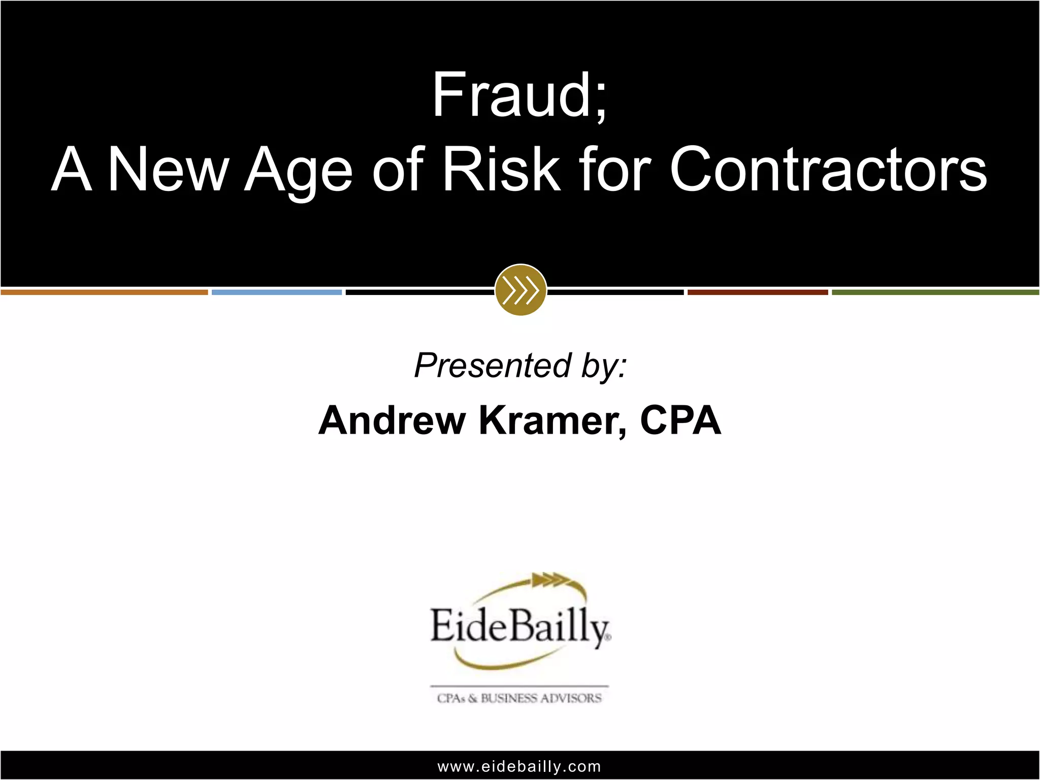 The document discusses trends in fraud, including that fraud occurrences have increased since the 2008 economic crisis. Theft of company property and embezzlement have seen the greatest increases. Most frauds are uncovered by tips, management review, or internal audit. For construction companies specifically, the most common fraud schemes are corruption, billing, check tampering, skimming, and expense reimbursements, with the median fraud loss being $200,000. The document also outlines the fraud triangle of opportunity, pressure, and rationalization as factors that can contribute to fraud. It provides recommendations for fraud prevention, including eliminating opportunity through strong internal controls and increasing the perception of detection.