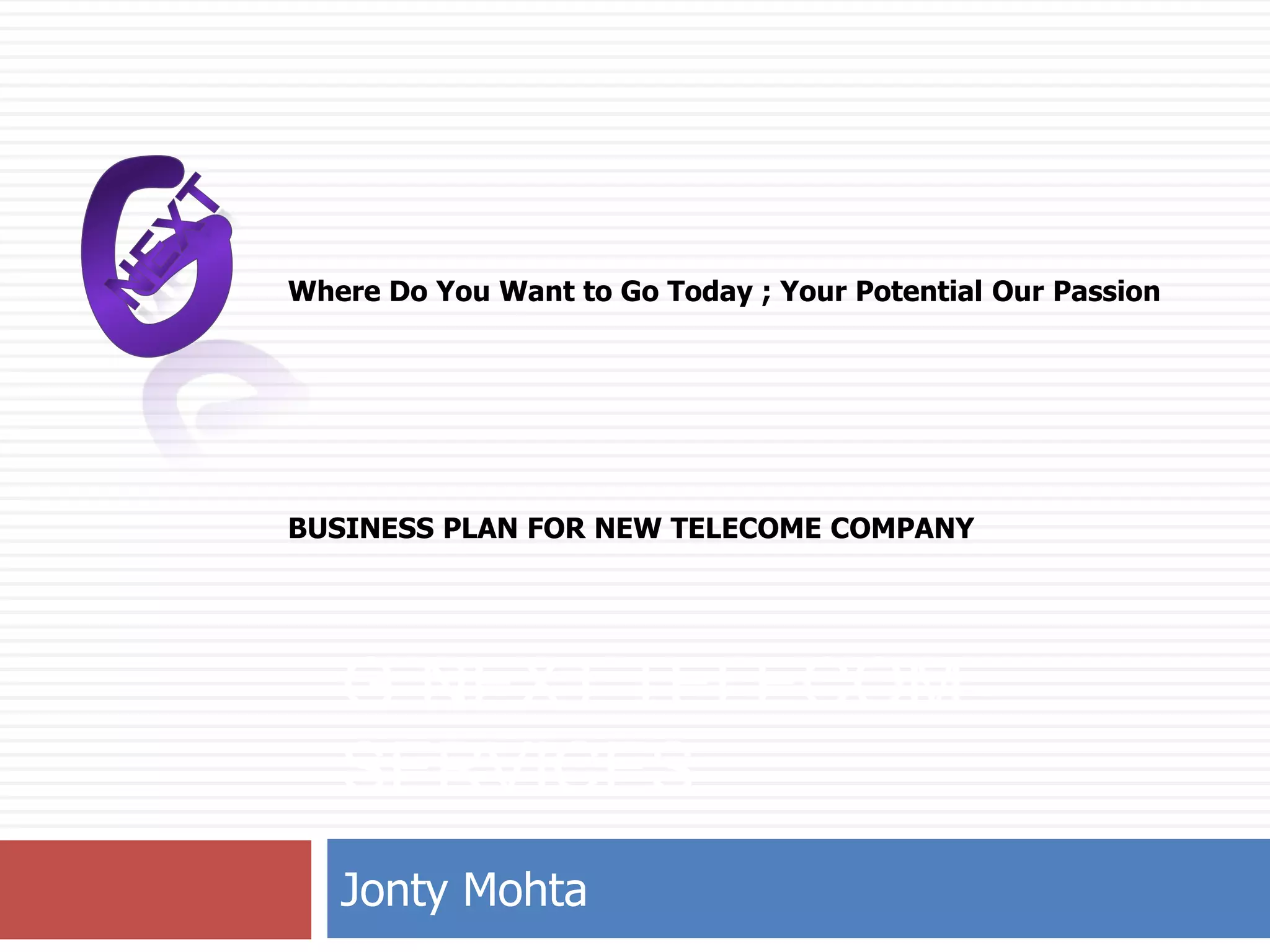 The document provides an overview of the global and national telecom industry and market scenario in India. It analyzes the political, economic, social, and technological factors affecting the industry. It discusses key competitors in India and their respective market shares. Rural and urban demographic characteristics are examined. Finally, it performs a Porter's 5 forces analysis and BCG matrix analysis to evaluate opportunities and threats for a new proposed telecom company called G-Next Telecom.