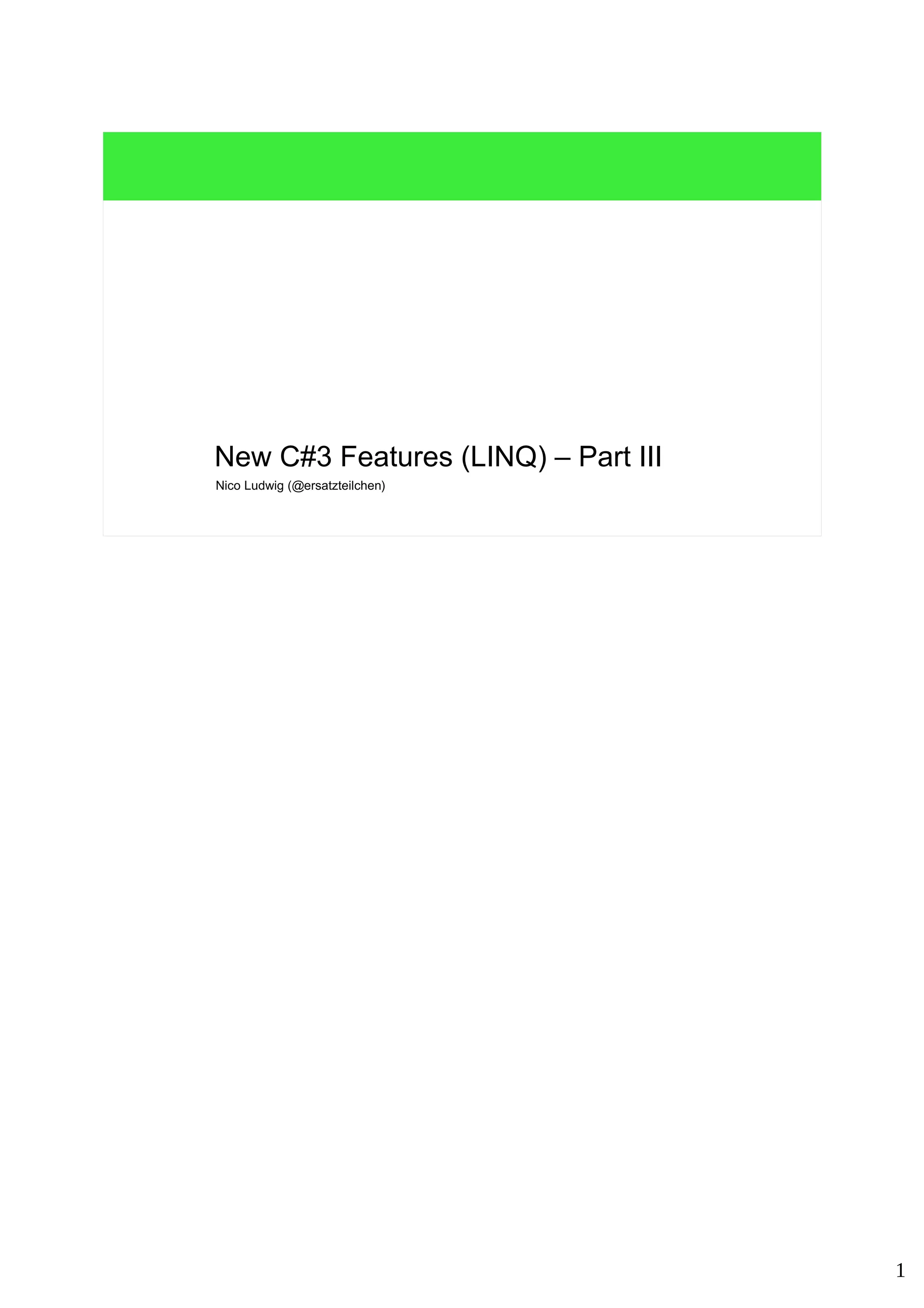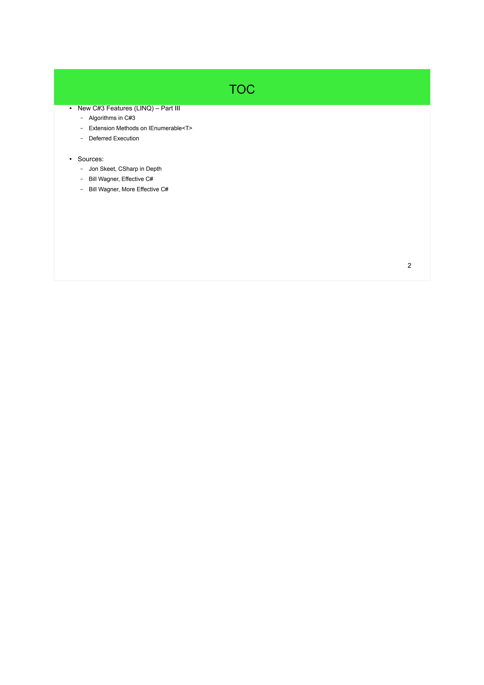 The document discusses LINQ and C# algorithms. It compares the C++ STL algorithm model to the .NET algorithm model using IEnumerable<T> sequences and extension methods. Key points include: