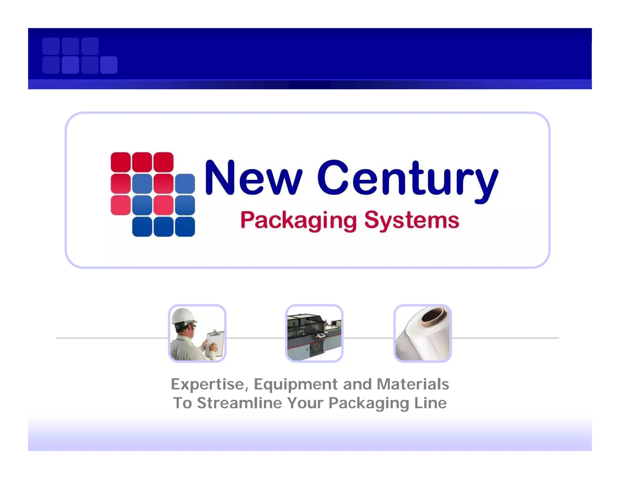 This document discusses expertise, equipment, materials, and solutions for packaging lines. It lists various packaging equipment such as shrink wrap, sleeve wrappers, stretch wrap, bagging systems, case erecting, skin packaging, and robotics. It also lists films for packaging needs including shrink films, stretch films, and poly bags. Additionally, it lists packaging materials and supplies such as tapes, labels, ink, machine parts, and more. It promotes New Century Packaging Systems as providing packaging solutions including equipment, films, parts, tape, and accessories to meet customers' needs around cost reduction, quality, efficiency, and sustainability.