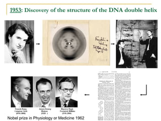 The document provides a history of DNA sequencing technologies. It begins with the discovery of DNA's structure in 1953 and the development of recombinant DNA technology in the 1970s. First generation Sanger sequencing produced short reads over 1,000 years to sequence the human genome. Next generation sequencing (NGS) platforms since 2005 have dramatically reduced costs while increasing throughput. NGS methods like Roche/454 pyrosequencing, Illumina/Solexa sequencing by synthesis, SOLiD ligation sequencing, and single-molecule real-time sequencing by Pacific Biosciences now enable large-scale genome and transcriptome analysis.