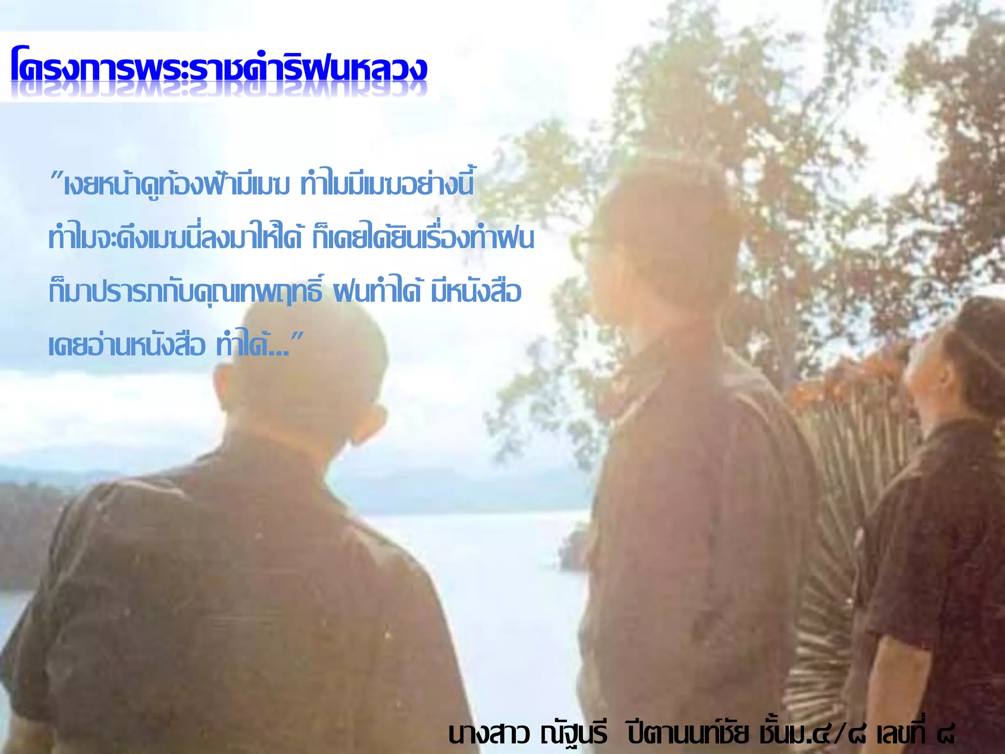 โครงการพระราชดาริฝนหลวง เป็นโครงการที่ก่อกาเนิดจากพระมหากรุณาธิคุณที่ห่วงใย