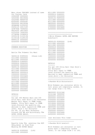 3) Item codes to obtain all items, as well as codes for apricorns and encountering shiny Pokémon.