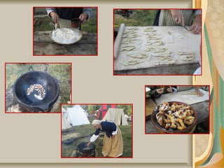 Документ описывает рецепты средневековой кухни, включая выпечку хлеба, приготовление пирогов, хвороста, вяленого мяса и колбасы. Упоминается о строгом регулировании качества хлеба в средние века и описываются этапы приготовления различных блюд. Также подчеркивается историческое значение Таллина как важного торгового центра в Балтийском регионе.
