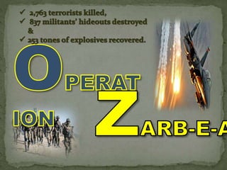 The document discusses terrorism and its impacts on Pakistan. It defines terrorism as the unlawful use of violence and intimidation, especially against civilians, in the pursuit of political aims. It notes that Pakistan has lost over 49,000 lives to terrorism since 9/11, when al-Qaeda attacked the US. The document outlines some of the political, external, socio-economic, and religious causes of terrorism in Pakistan. It also discusses the significant economic and social impacts of terrorism on Pakistan, including losses of over $100 billion to the economy. The document concludes by outlining some measures Pakistan has taken to counter terrorism.