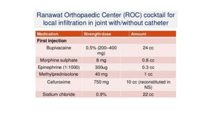 - Spinal anesthesia reduces readmission rates compared to general anesthesia. Blood conservation strategies like tranexamic acid administration can decrease transfusion needs.