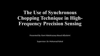 This document presents the synchronous chopping technique for high-frequency precision sensing, which enhances signal-to-noise ratio by modulating input signals to reduce noise and offset errors. Key applications include medical devices, telecommunications, and structural health monitoring, emphasizing its importance for accurate measurements and diagnostics. The document concludes with suggested future work focusing on optimization and integration of this technique into real-world applications.