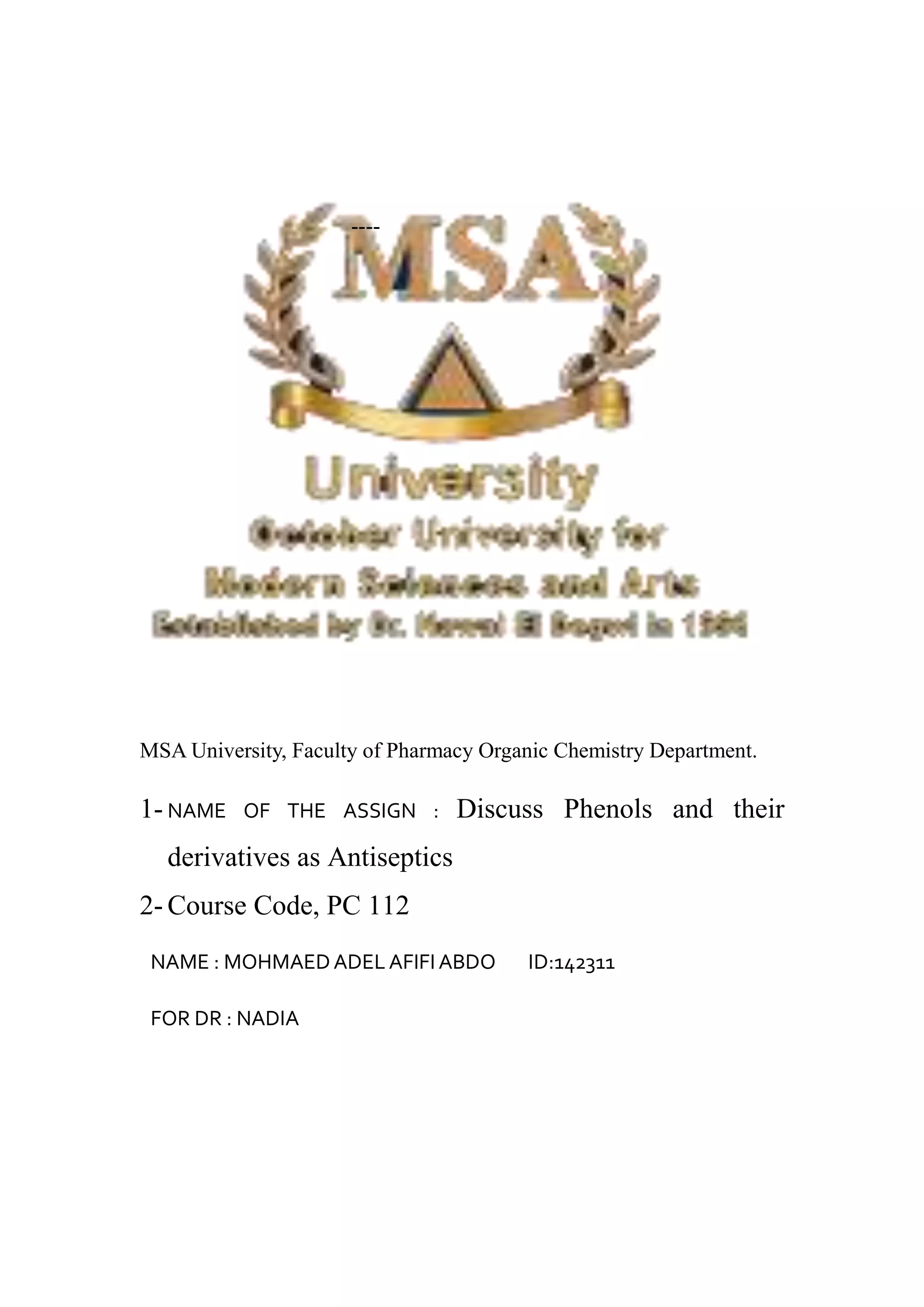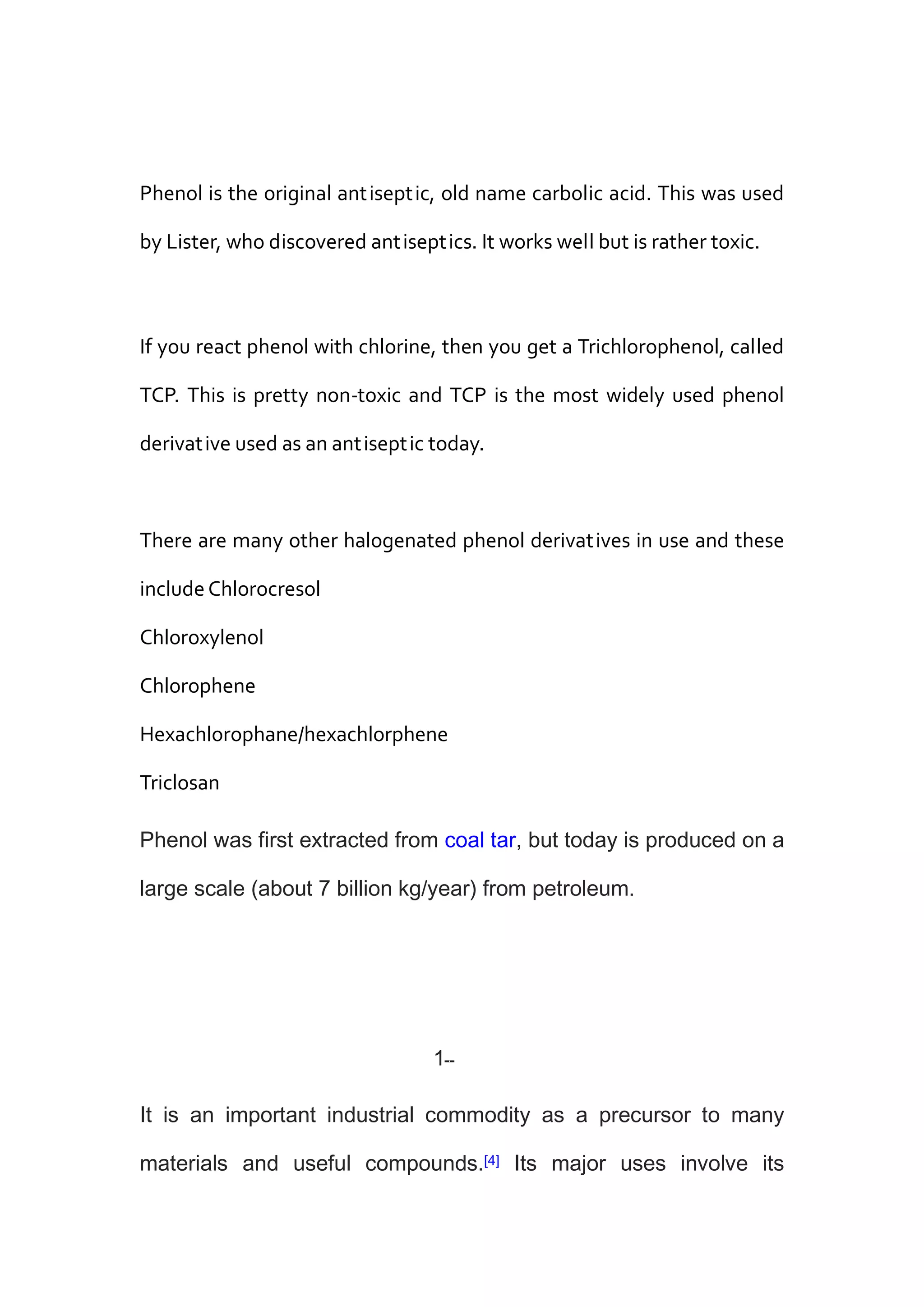 1. Phenol is the original antiseptic used by Lister and works well but is toxic. Derivatives like trichlorophenol are less toxic and widely used as antiseptics today.