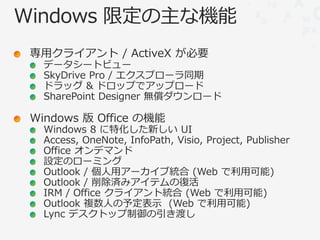 (ボリュームライセンスのクロスプラットフォームライセンスが適用される場合、Office for Mac 利用権あり)