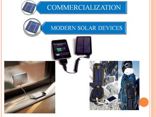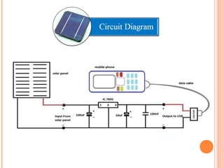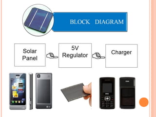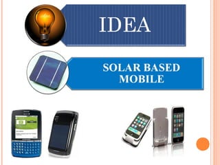 The document discusses a student's new product development strategy for a solar mobile charger. It provides background on solar cells and how they work using the photovoltaic effect to convert sunlight into electricity. It then describes the specifications of the proposed solar panel and charger, including its 5.5V/1000mA output that can fully charge a typical mobile phone in about 60 minutes using power from 4 connected solar panels.