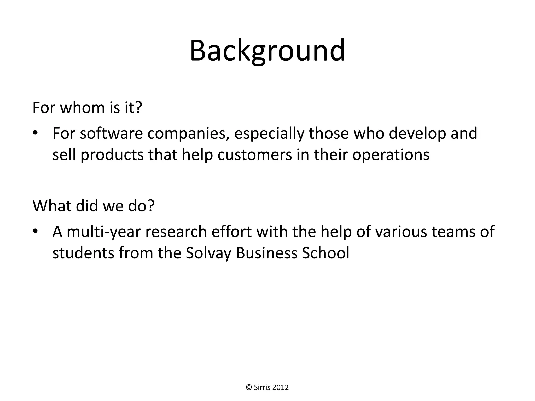 This document discusses a fundamental growth strategy decision for software companies regarding whether to enter new markets or offer complementary products in existing markets. It was found that companies tend to grow faster by creating more value for familiar markets rather than pursuing new market opportunities. The research highlights the importance of this early decision in influencing long-term growth outcomes.