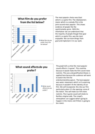2) Males made up the majority of respondents. The most popular film choice was the sports film "Goal".