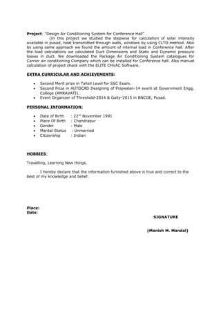 - Manish M. Mandal is seeking a position in a progressive organization where he can enhance his skills and contribute to success.