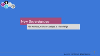 The document explores the concept of 'neo-nomads' in a globally interconnected society where traditional boundaries and identities are becoming increasingly irrelevant. It highlights the rise of a shared digital culture that merges and homogenizes experiences while also fostering uniqueness and weirdness as forms of expression. Additionally, it discusses the implications of hyper-realities and the continuous evolution of brands in response to these shifting contexts.