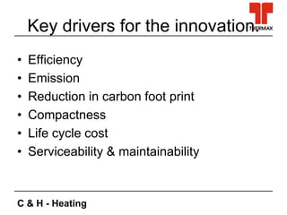 This document discusses new technologies in process heating. It covers combustion technologies for fossil fuels and biomass, as well as biomass boiler designs. Challenges in biomass combustion include low density fuel with high moisture and emissions. New combustion technologies aim to improve efficiency, reduce emissions, and be compact and cost-effective. Computational tools like CFD and FEA are helping develop new products and solve design problems. Condensing technology allows recovering latent heat to boost efficiencies above 100%, but introduces material challenges.