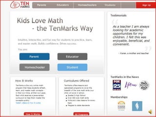 Brittney LeJeune is a teacher who uses technology and TenMarks in her classroom. She maintains a blog and websites focused on teaching with technology at brittneylejeune.wordpress.com and 4teacher.org. She also promotes the online math program TenMarks at tenmarks.com.