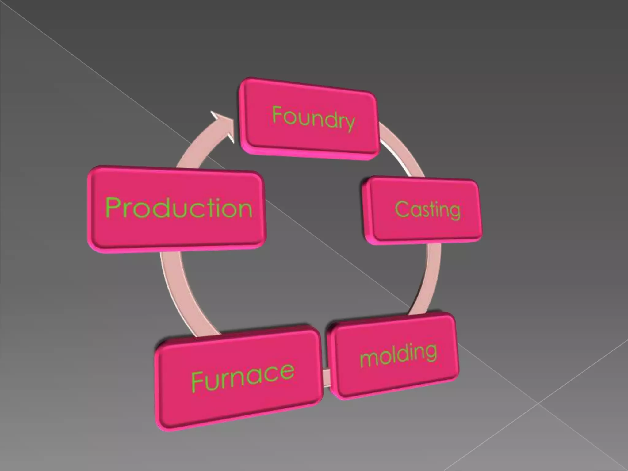 A foundry produces metal castings using molds. Metals are melted and poured into molds, then allowed to solidify. Common metals cast include aluminum and iron. Molding involves shaping materials using molds. Molds are hollow blocks that materials like plastic or metal are poured into to adopt the mold shape. New technologies have improved foundries by reducing costs, labor, and space needs while improving productivity.