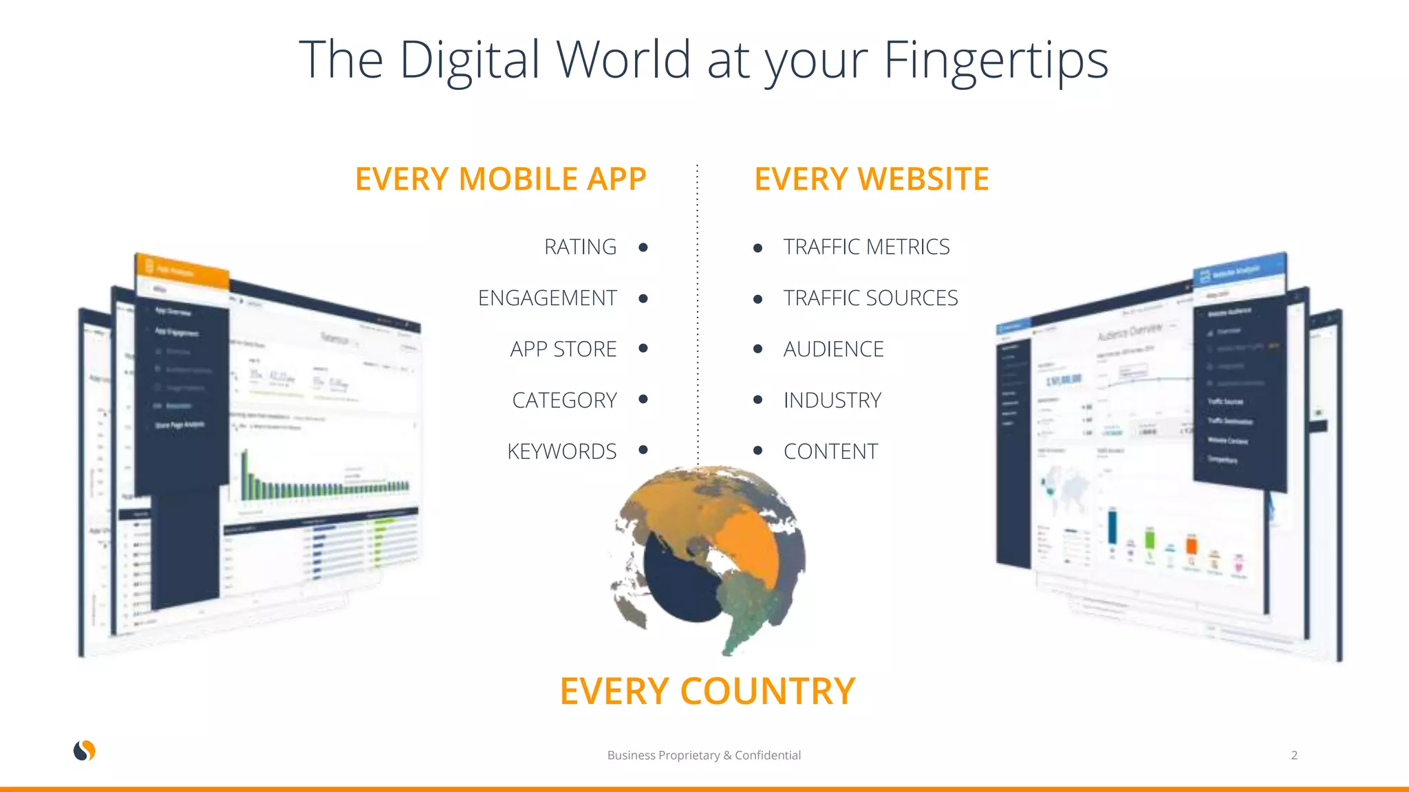 1) SimilarWeb provides digital marketing insights to help companies discover opportunities, make decisions, and deploy digital strategies. It tracks over 1% of daily online activity in 60+ countries.