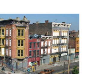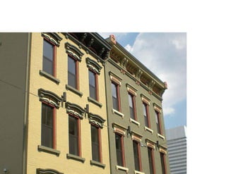 3CDC was formed in 2003 by Cincinnati's corporate leaders and the City to address deterioration and disinvestment in the urban core. It focuses its work in the Central Business District and Over-the-Rhine. 3CDC manages over $250 million in investment funds to support development activities. It functions in various roles including master developer, developer, asset manager, and event producer. Upcoming investments include $241 million for projects such as Mercer Commons and OTR Phase V.