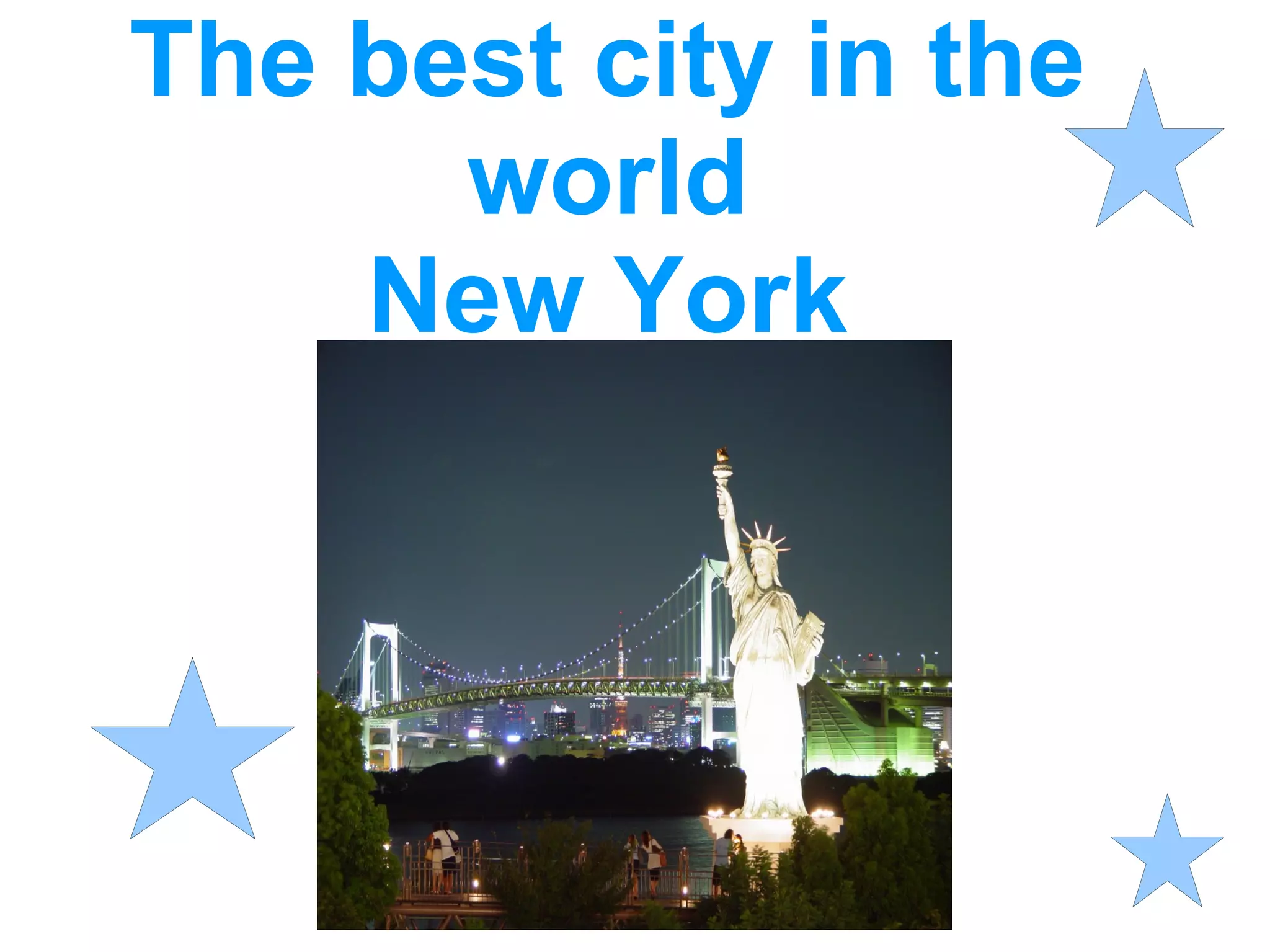 New York is considered the best city in the world, located in the United States of America. It has a population of over 1.3 million inhabitants and contains many monuments and interesting attractions. The author likes New York because they find it to be a very beautiful city.
