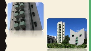 The New York Five refers to five influential New York architects in the 1960s-1970s: Peter Eisenman, Michael Graves, Charles Gwathmey, Richard Meier, and John Hejduk. They first exhibited together in 1969 after being organized by Arthur Drexler and Colin Rowe. While each architect had differing theories and visions, they shared a passion for architecture. Two key works are Eisenman's deconstructivist Nunotani Building in Japan and Graves' Disney Dolphin Resort hotel in Florida.