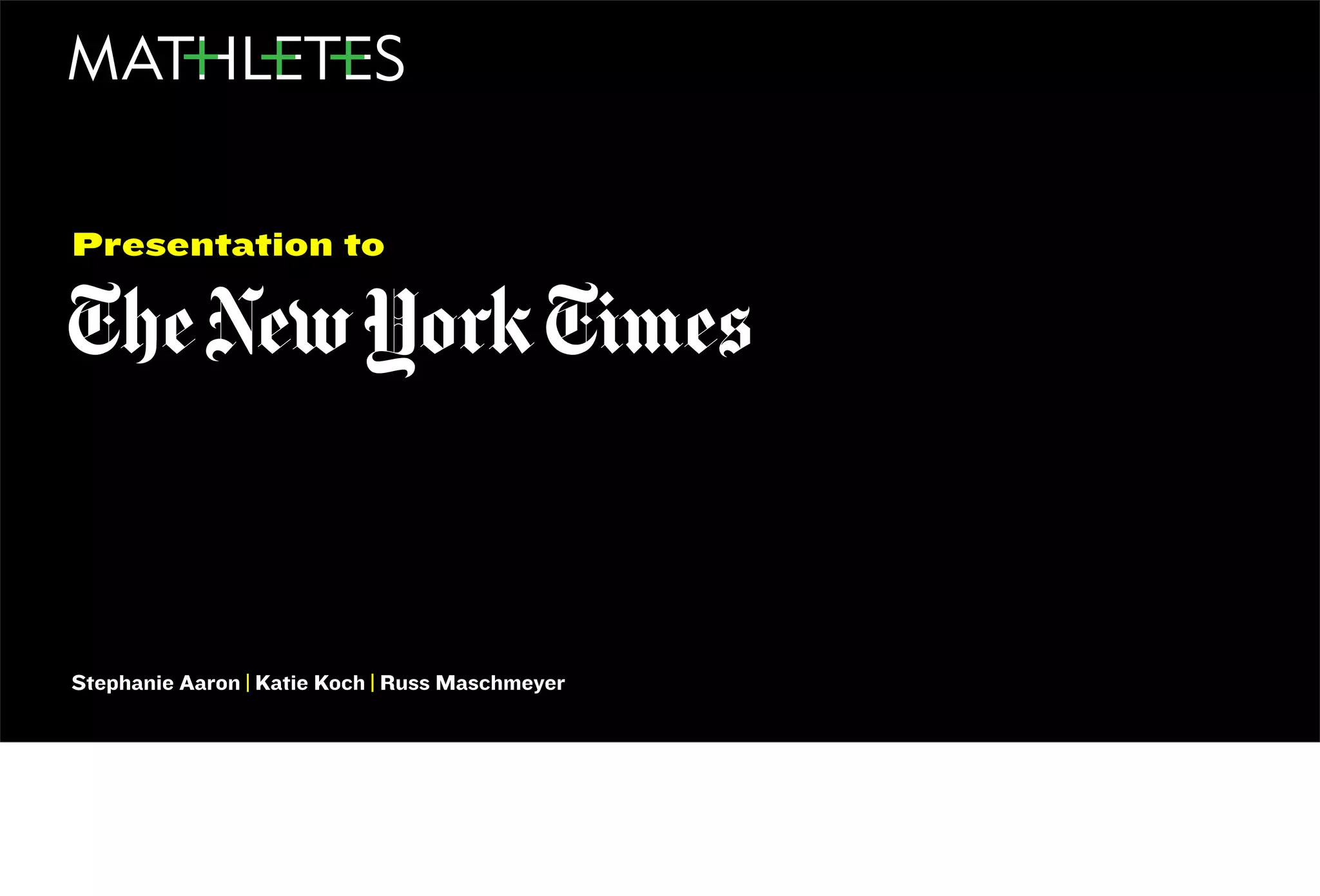 The document outlines a presentation proposing the development of a mobile app called Breakout for the New York Times, aimed at enhancing reader engagement by providing relevant, contextual information through interactive content. This app allows users to snap photos related to news items to receive instant access to articles, infographics, and videos, fostering a continuous engagement with news in a way that fits users' diverse needs throughout the day. By utilizing user data, the New York Times can personalize content and advertising, ultimately creating an ecosystem that revitalizes reader interest and improves overall user experience.