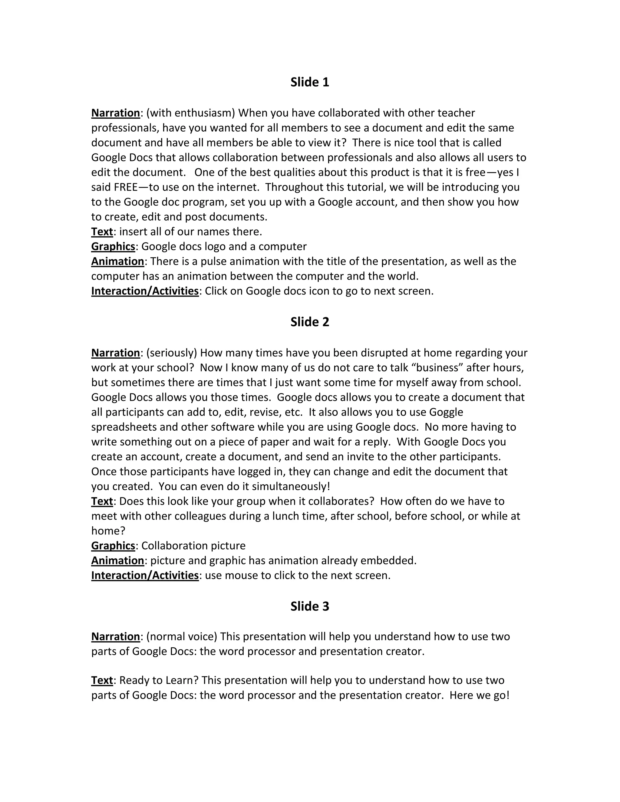 This tutorial teaches participants how to use Google Docs. It shows how to create a Google account, make Word documents and PowerPoint presentations using Google Docs, and share documents with others. The tutorial includes screenshots and videos to demonstrate the various features of Google Docs. It highlights that Google Docs allows for simultaneous collaboration on documents from any device with internet access.