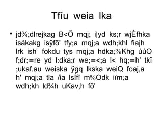 Èkfmd; wkd.;fha hïÈkhl jeo.;a jk hï f;dr;=rla ,enqK úg th Èkfmd;l ,shd ;eîfuka tu wod< Èkfha jev lrk whg ta iïnkaOfhka ls%hd l< yelsjkq we;'