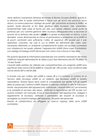 È stata pubblicata una procedura online per la valutazione del rischio nell'uso di apparecchi laser, finalizzata alla sicurezza degli operatori e delle persone esposte. La procedura guida gli utenti nella corretta gestione degli apparati laser, in particolare delle classi 3B e 4, e fornisce indicazioni sulla sicurezza e sull'installazione degli stessi. Inoltre, è stato evidenziato l'importanza dell'investimento in sicurezza per ridurre i costi legati agli infortuni sul lavoro.